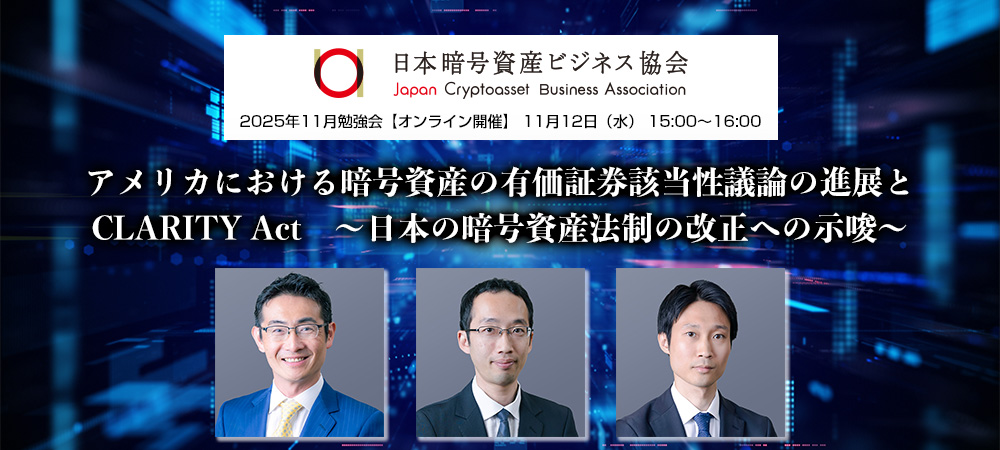 | タイムスケジュール | ■ 第一部(15:00〜16:00) ————————————– ●15:00 講演 アメリカにおける暗号資産の有価証券該当性議論の進展とCLARITY Act ~日本の暗号資産法制の改正への示唆~ ■講師 ・増島 雅和 森・濱田松本法律事務所外国法共同事業 パートナー ・岡野 智 森・濱田松本法律事務所外国法共同事業 パートナー ・尾登 亮介 森・濱田松本法律事務所外国法共同事業 シニア・アソシエイト 米国デジタル資産戦略の勉強会の第二弾はCLARITY Actを取り上げます。CLARITY Actは下院を通過後、上院で審議が進められている最中ですが、米国における暗号資産の証券該当性に関するこれまでの裁判所での検討を踏まえた骨太な法案であり、米国内ではデジタルコモディティに関する基本法制として証券法と並ぶものとも受け止められています。CLARITY Actは、デジタルコモディティの開示規制から業者規制、さらにはDeFiまでウィングの広い法制ですが、本勉強会では、日本で現在行われている暗号資産法制の見直しとの関係で最も示唆深い開示規制にフォーカスしてご説明したいと思います。 本テーマは、GENIUS法のセッションと、CLARITY法のセッションの2回に分けて開催させていただいております。 前回、9月18日(木)のGENIUS法のセッションに引き続き、今回、11月12日(水)は、CLARITY法のセッションをメインに開催させていただく予定です。 ●16:00 終了 |