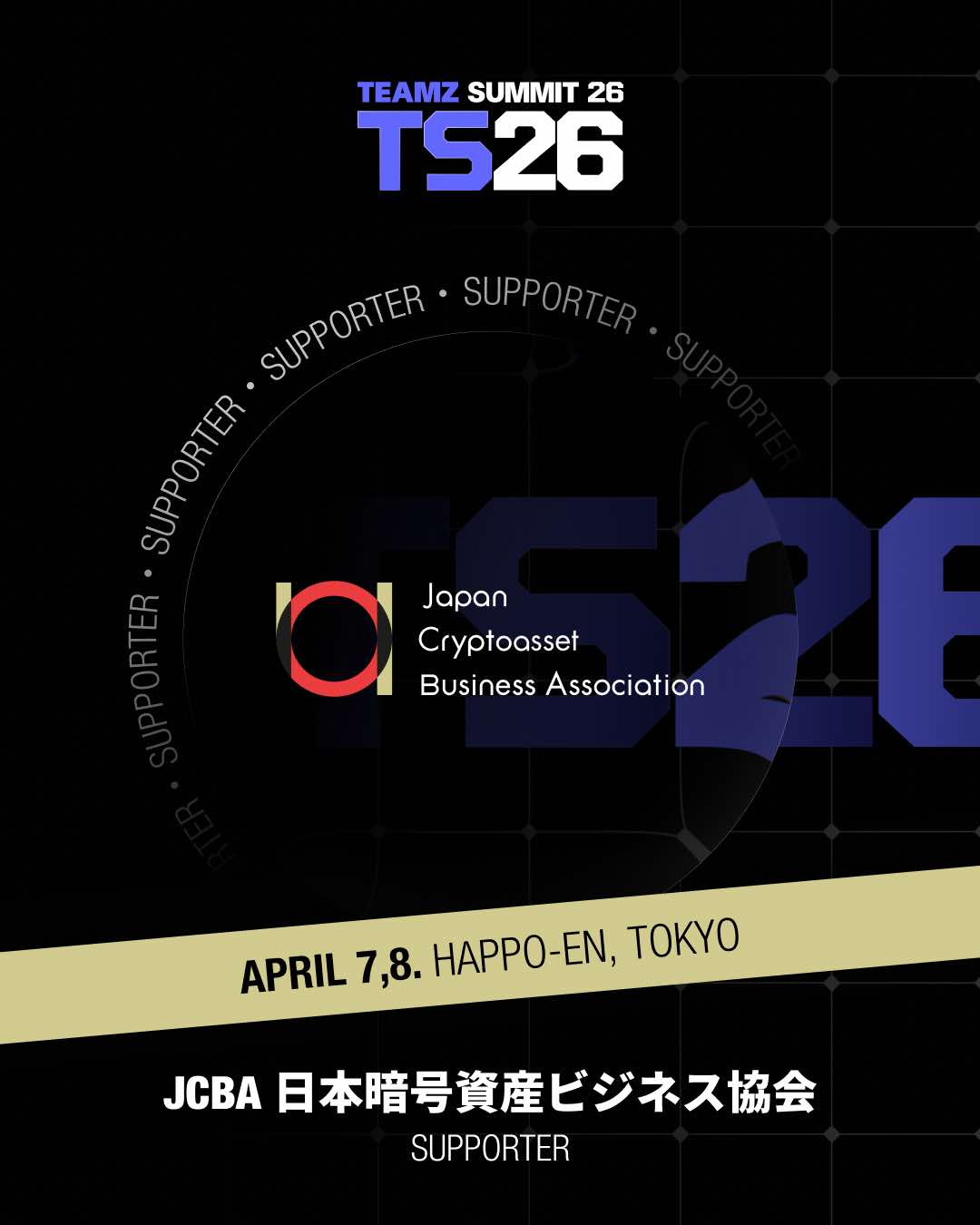 一般社団法人日本暗号資産ビジネス協会は、株式会社TEAMZ主催の「TEAMZ WEB3 / AI SUMMIT 2026」を後援いたします。